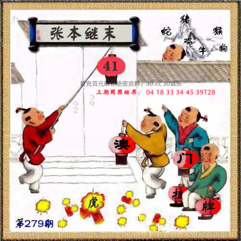 279期:开奖时间2025年10月06(星期一)晚9:30开(农历八月十五 猴冲虎)