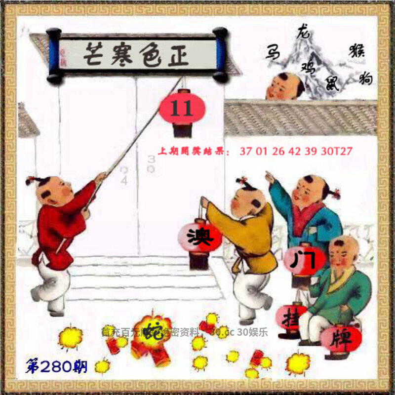 280期:开奖时间2025年10月07(星期二)晚9:30开(农历八月十六 鸡冲兔)